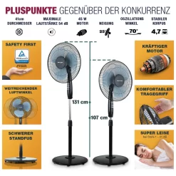 Be the first to review “RelaxxNow Super Leiser Standventilator Mit 45W Motoren Leistung, Oszillierender Ventilator Mit 3 Geschwindigkeitsstufen Und Höhenverstellbarkeit Bis 131cm, 41 DB Schlafmodus & 41cm Durchmesser, VTX100” Antwort abbrechen