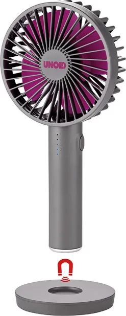 | Zusätzliche Varianten | Unold 86620 Breezy II Handventilator Magnetisch Standfuß Spiegel 4W 5-stufig, Unold 86620 Breezy II weiß Handventilator USB Akku 5stufig Standfuß Erfrischung |
