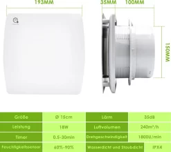 Schreibe die erste Rezension für „Wolketon Badluefter 150mm Feuchtesensor Timer CE Ventilator Mit Rueckflussleitblech Wandluefter“ Antwort abbrechen